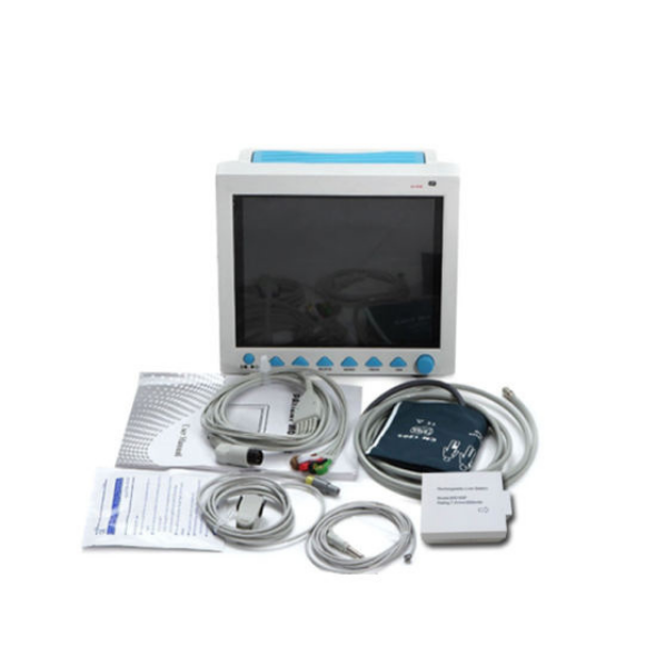 The monitor, power supplied by 100-240V~,50/60Hz, adopts 12.1” colour TFT LCD displaying real-time date and waveform. It can synchronously display eight-channel waveform and full monitoring parameters equipped with an optional 48mm thermal recorder. The monitor can be connected to the central monitoring system via wire or wireless network to form a network monitoring system.